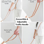 The non-adjustable side can also be worn across the shoulder comfortably with the adjustable side clipped to your dog if you wish to shorten/increase the distance between you and your pup. The adjustable side also doubles as a traffic handle when clipped to your pup.