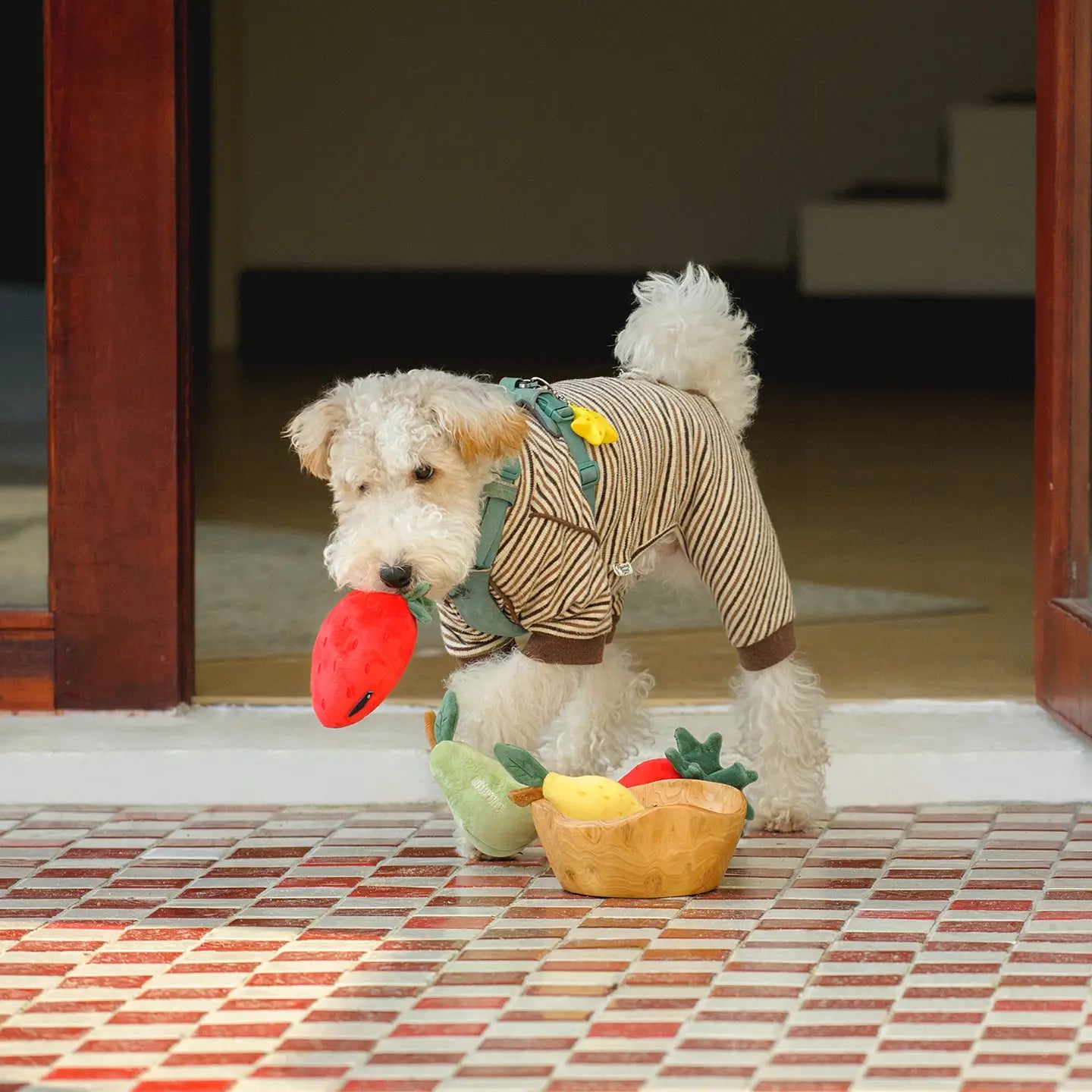 Add a splash of color and charm to your assortment with these fruit-inspired plush dog toys by CHEWFFON. Designed to delight both pets and pet parents, each toy combines soft textures, vibrant colors, and playful squeaky elements to create an engaging sensory experience for small to medium dogs.