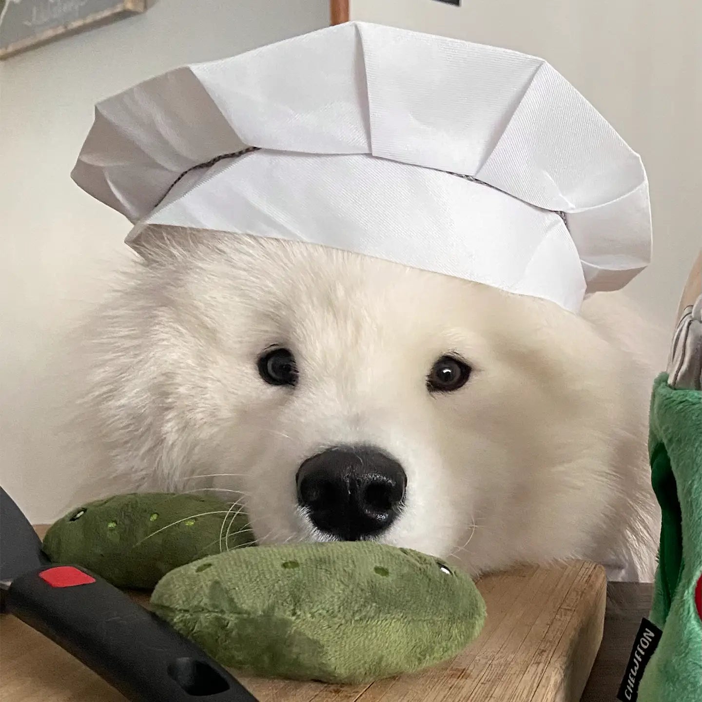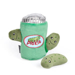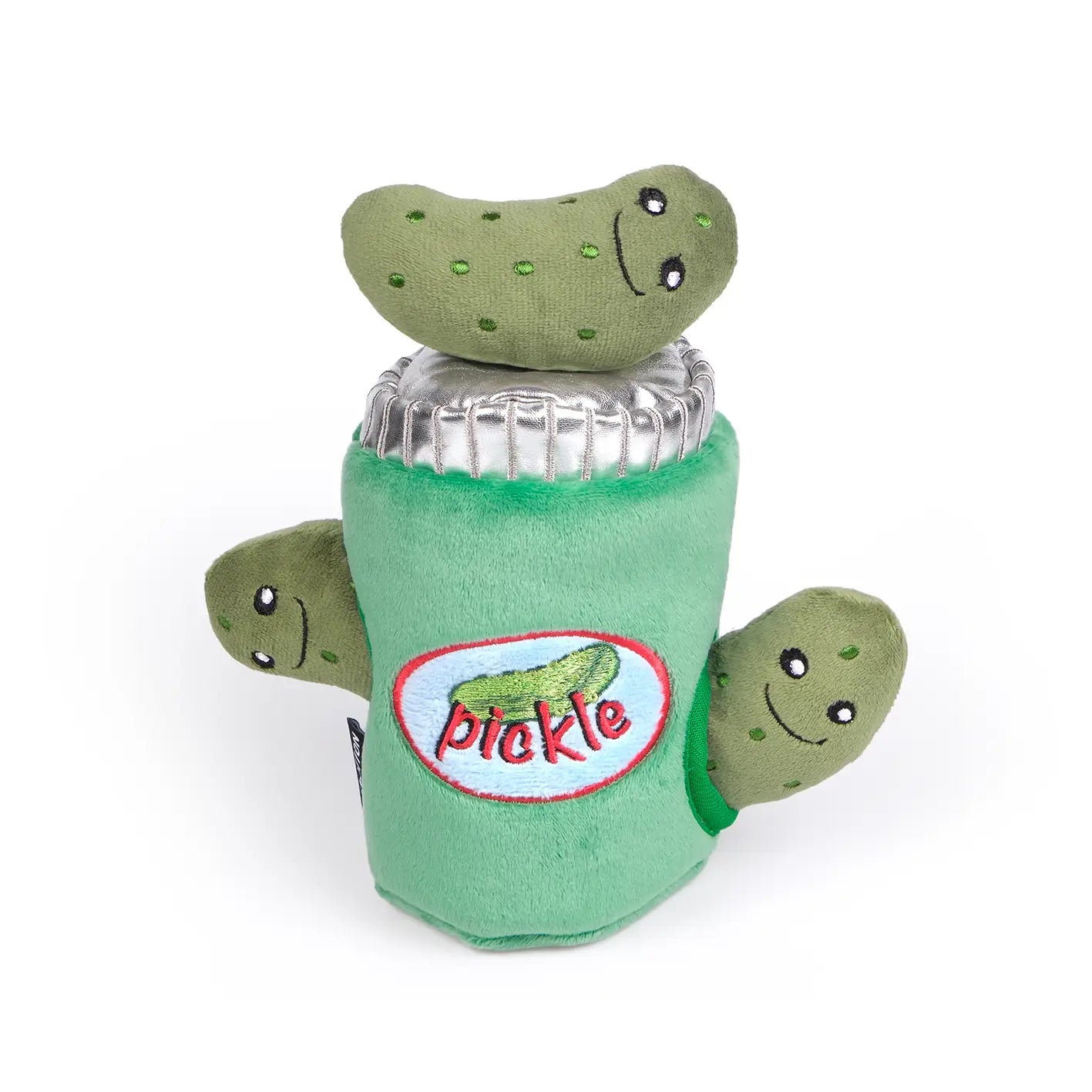 Inspired by the classic pickle jar, this whimsical plush toy turns a familiar kitchen favorite into an engaging and adorable dog toy. Featuring a crinkly jar and three squeaky mini pickles, it’s designed to provide mental stimulation and interactive fun for curious pups.