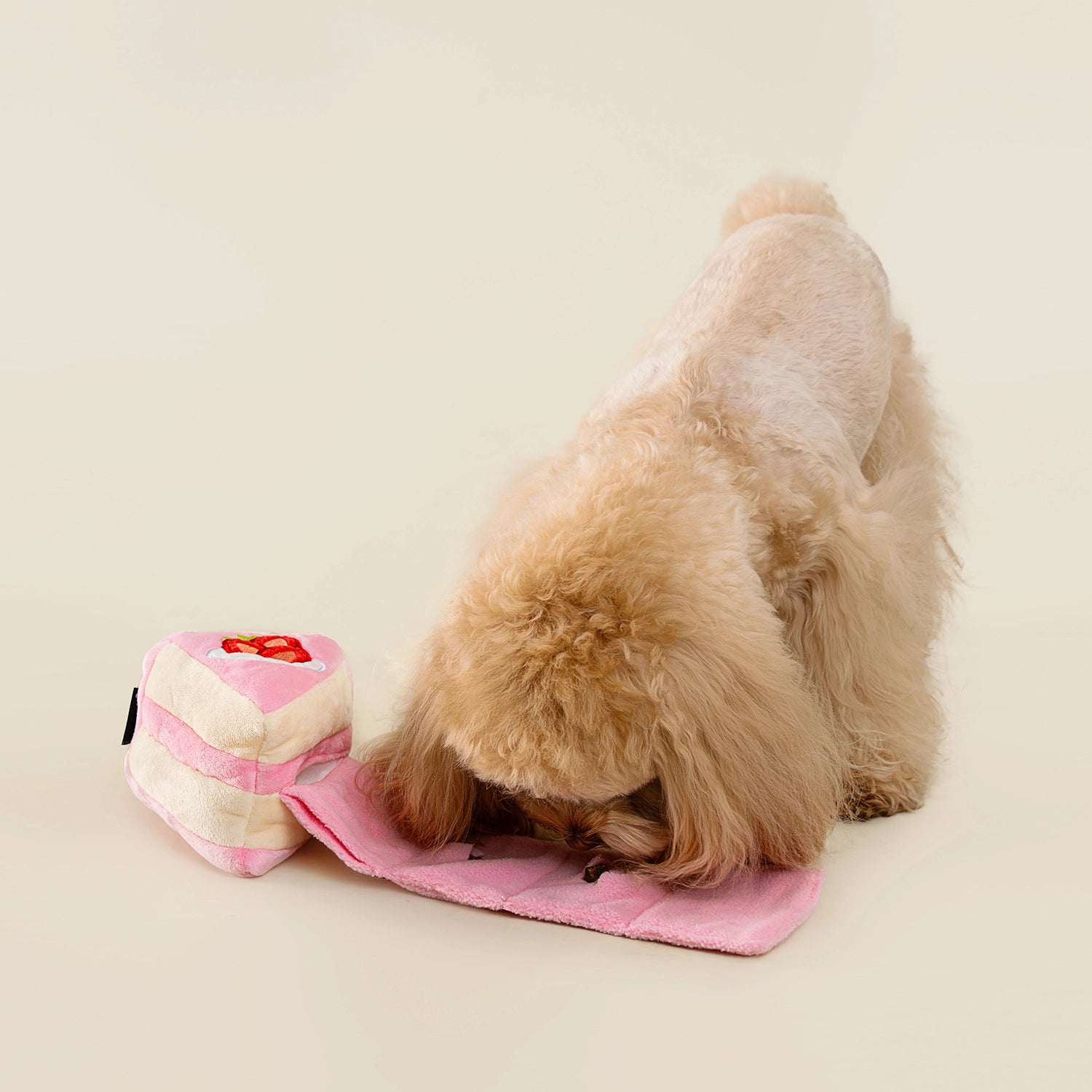 CHEWFFON Strawberry Cake-inspired Snuffle Toy offers interactive fun and mental stimulation. Shaped like an adorable cake, it's perfect as a dog birthday cake alternative or a festive treat!