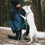- The Ekko Leash can become half it's length by holding it in half and clipping the carabiner to the metal o-ring - -