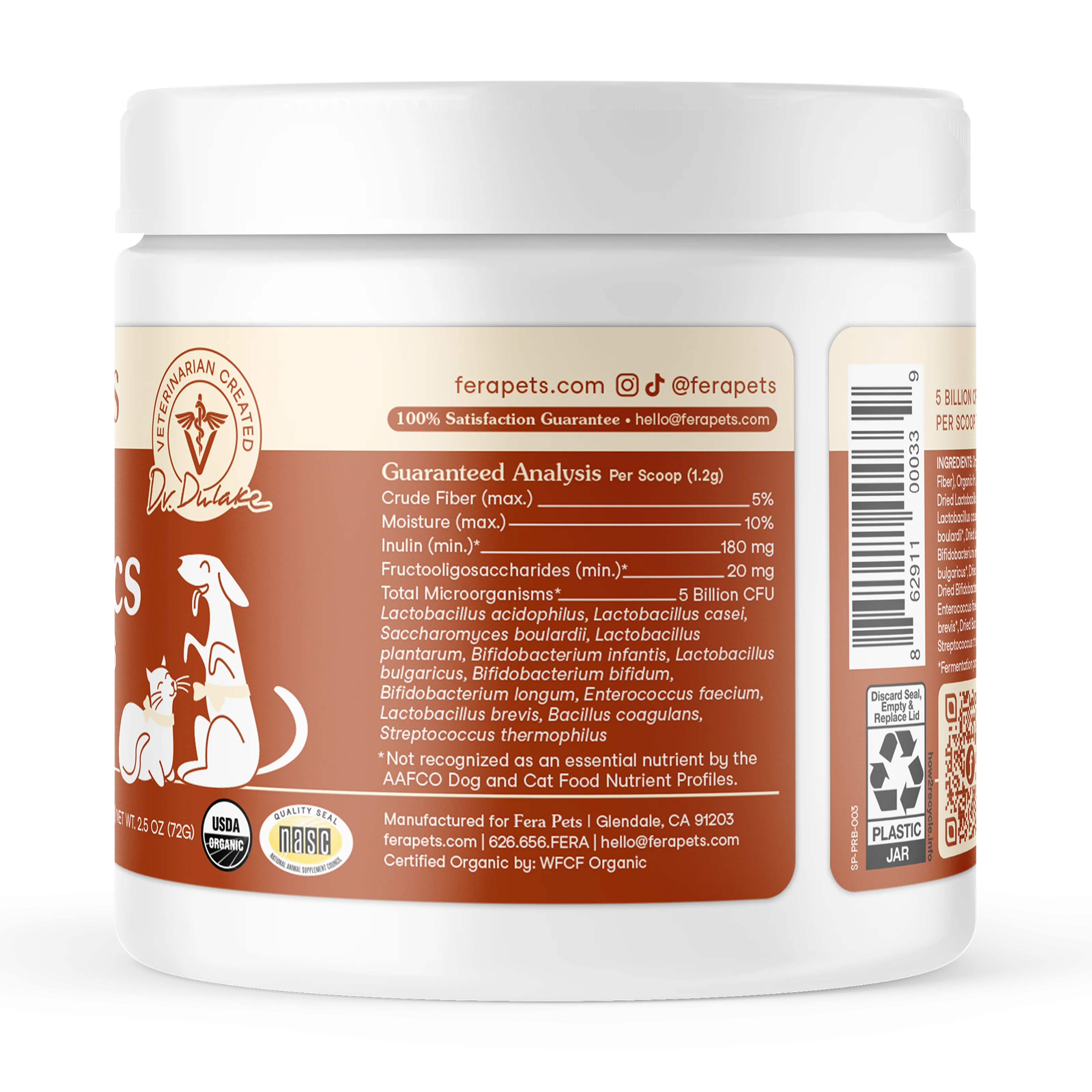 Fera Pets USDA Organic Probiotics with Prebiotics Powder for Dogs & Cats