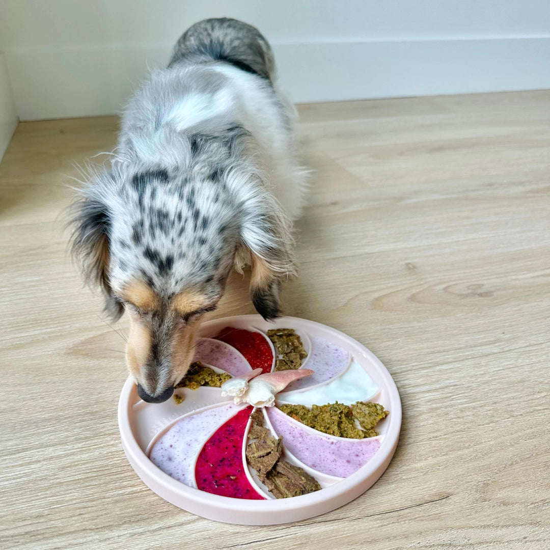 Simply prep your meal in our Zoomies slow feeder, stack the wheelies lick mat and lid, facing up on top and you're ready for any on the go meals! Alternatively, fill the wheelies lick mat and lid with your favourite yogurt or spreads and freeze as is for an extended enrichment session! - Trust us, you'll thank us later!