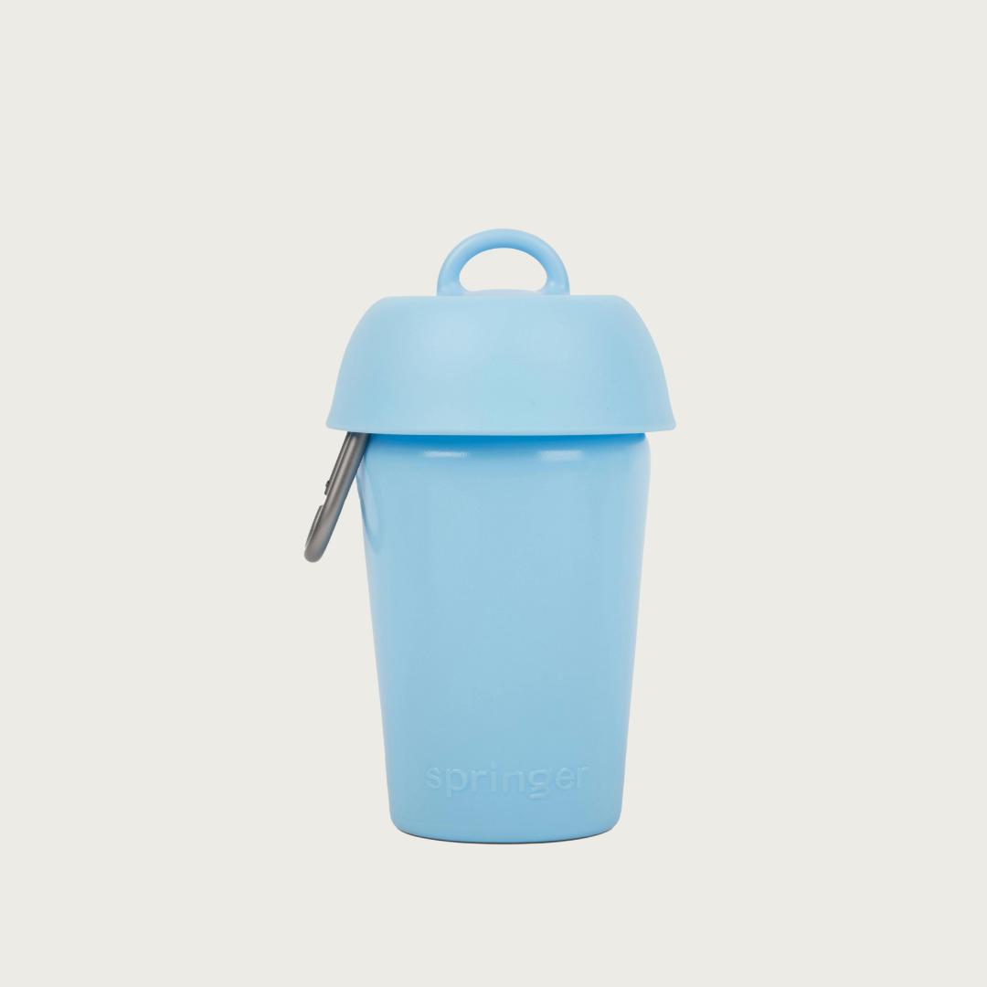 The perfect solution for keeping your dog hydrated on-the-go. Designed for your dog to drink fresh water from the attached bowl without wasting a drop. Simply squeeze the bottle with one hand to fill the bowl and release to drain the excess water back in. The leak-tight innovative bottle includes a carabiner for easy clipping to your backpack, bag, or leash — ideal for hikes, beach visits, road trips, and walks around the neighborhood.