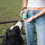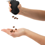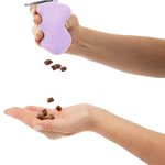 Uniquely shaped for effortless squeezing, this food-grade silicone dog treat dispenser allows you to easily dispense a few treats at a time, making it an essential accessory for walks, training, and on the go rewards. Simply squeeze to dispense dog treats! To fill, squeeze the dispenser with the slit facing up and add kibble or treats to keep your pup motivated and delighted.