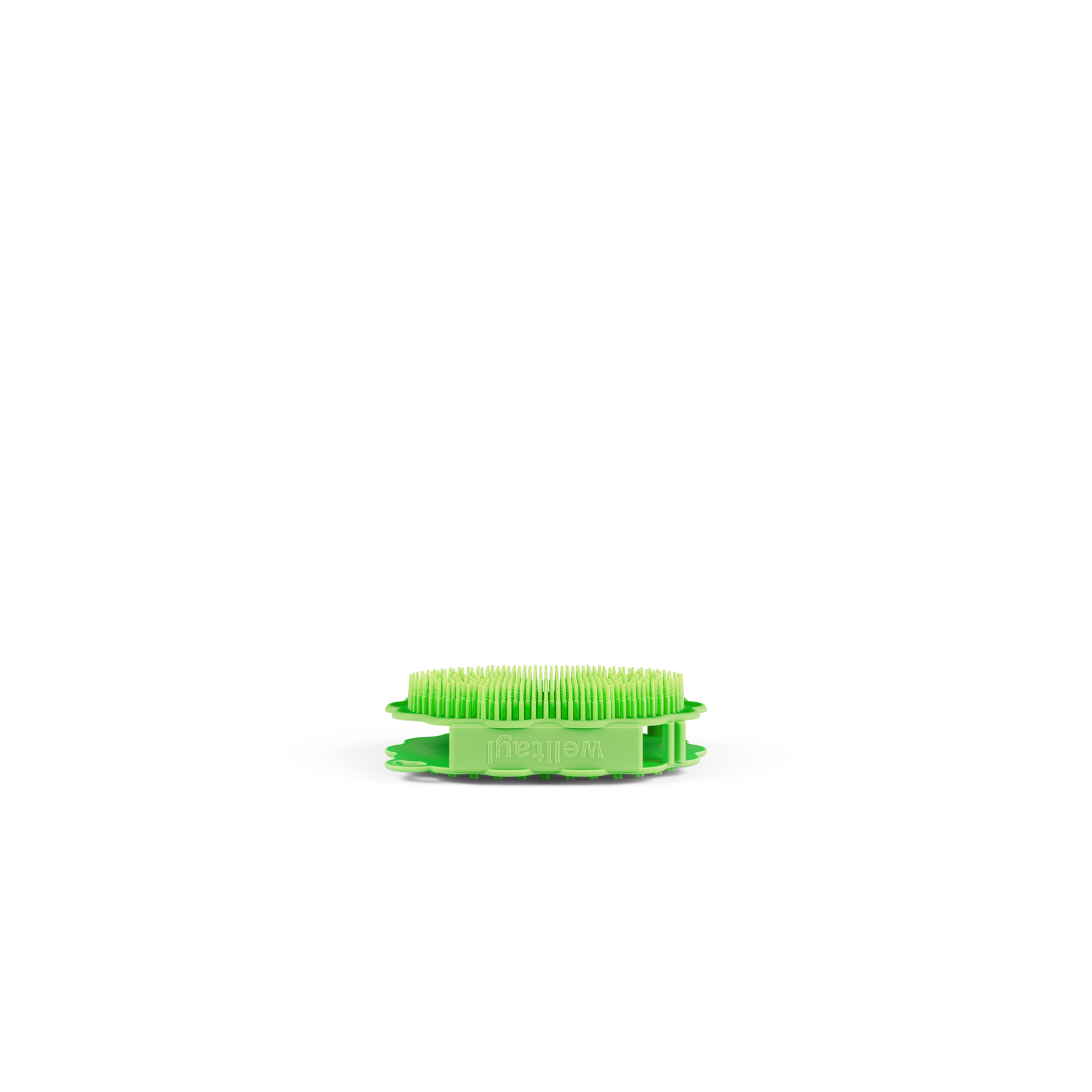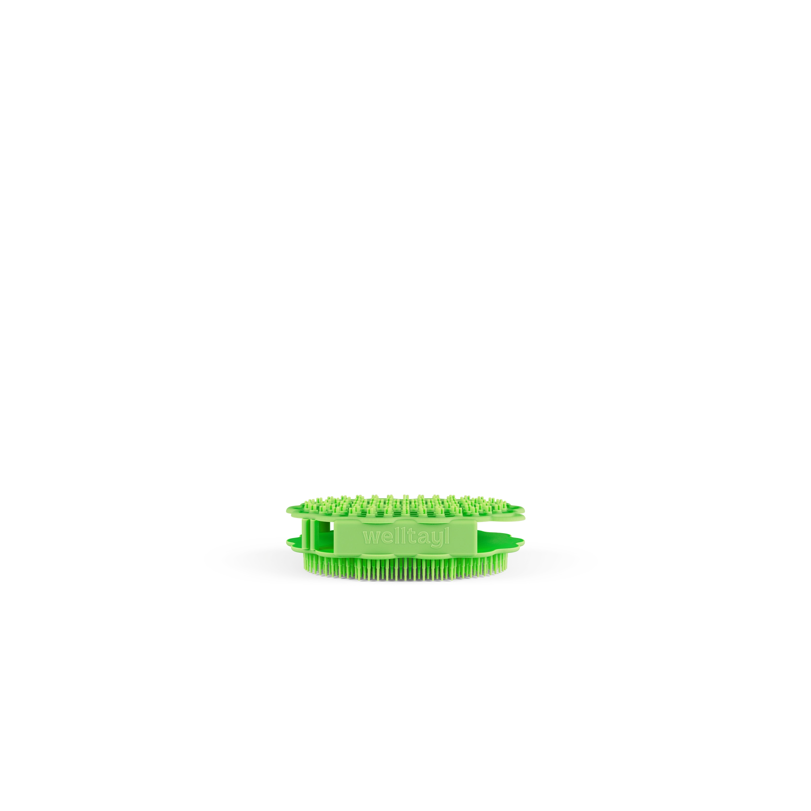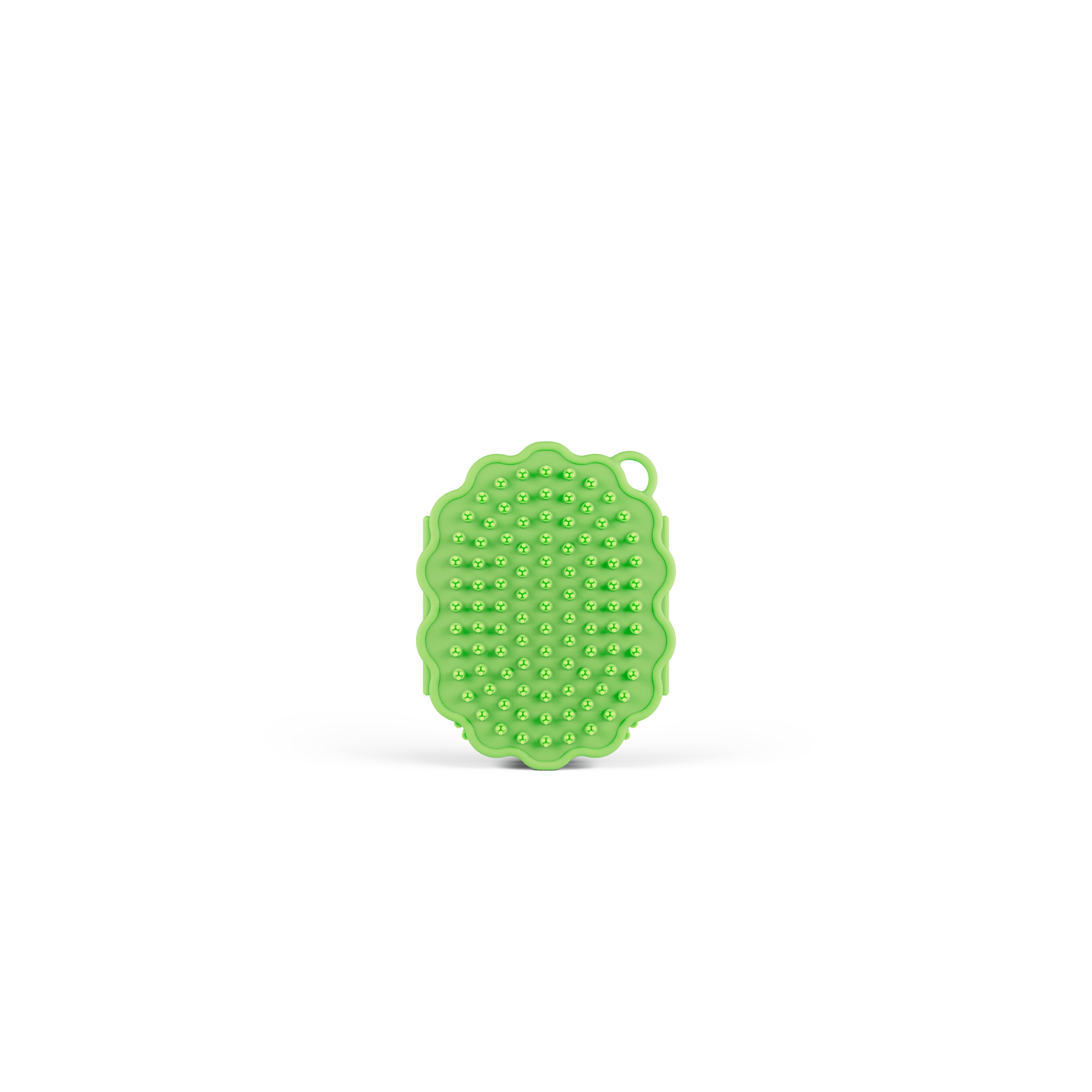 The Bath Brush is a dual-sided tool designed for all coat types. Made from medical-grade silicone, it gently lifts dirt, dander, and loose fur while exfoliating the skin and supporting healthy circulation. The longer bristle side builds a rich lather and works through denser areas of the coat, while the shorter side gently massages the skin and glides easily over areas with less fur. Flexible, easy to rinse clean, and safe for daily use.