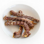 These duck necks are fully digestible, air-dried, and deliciously crunchy for your furry friend(s). Duck necks are approximately twice as big as chicken necks and less than half the size of turkey necks. Poultry necks are popular in the raw-feeding community as cartilage contains natural glucosamine which contributes to your pets' joint health. In addition, chewing duck necks promotes clean teeth and healthy gums!