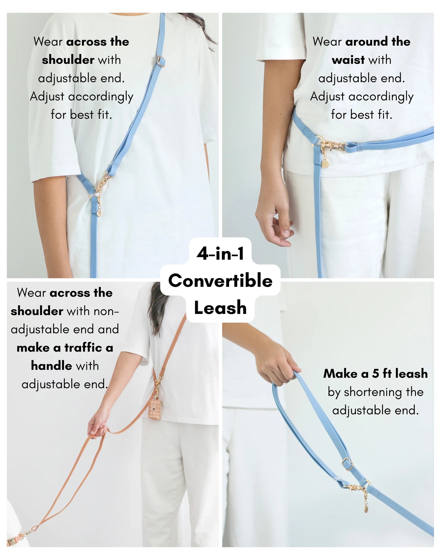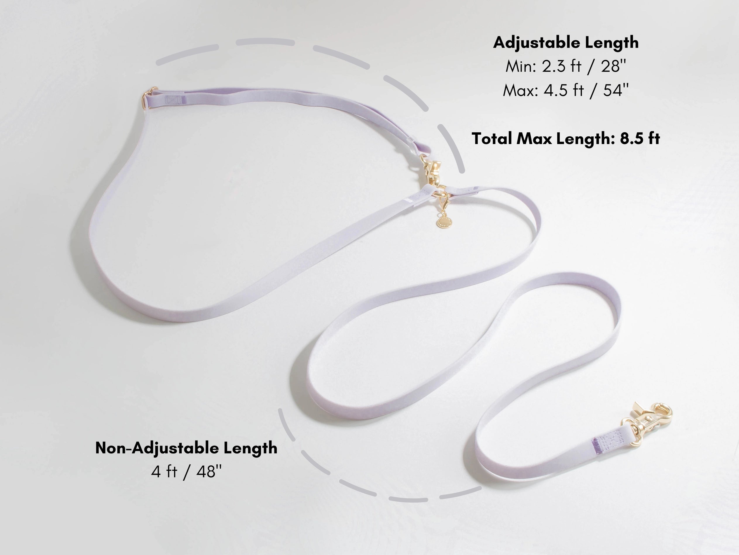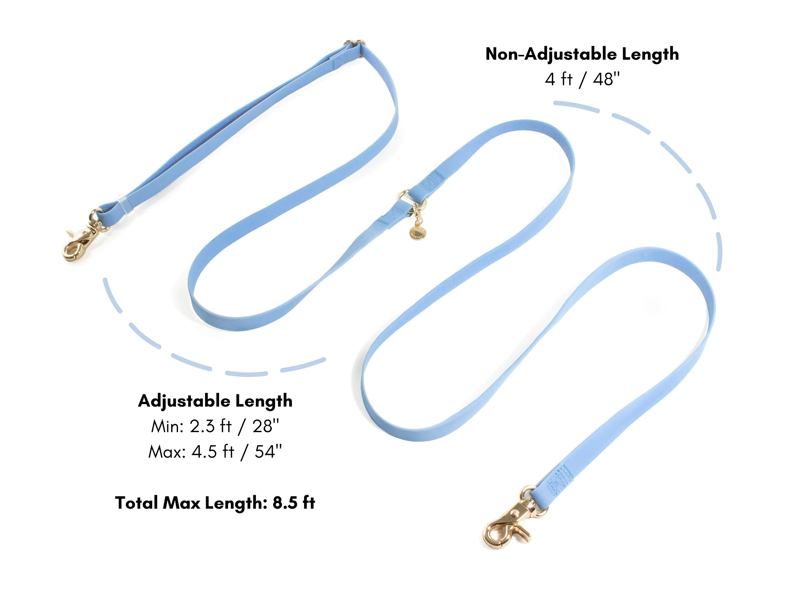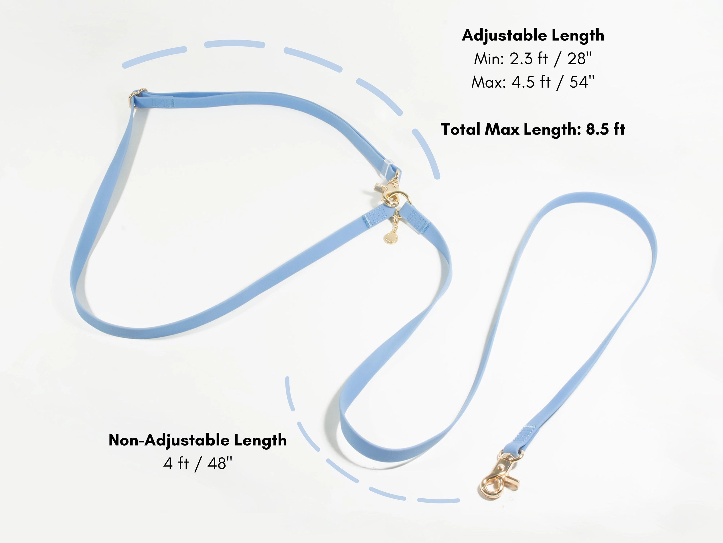We designed this leash with both you and your dog in mind, with one side that is fully adjustable so that you can wear it across your shoulder or around your waist, or hold it as a regular hand held leash.