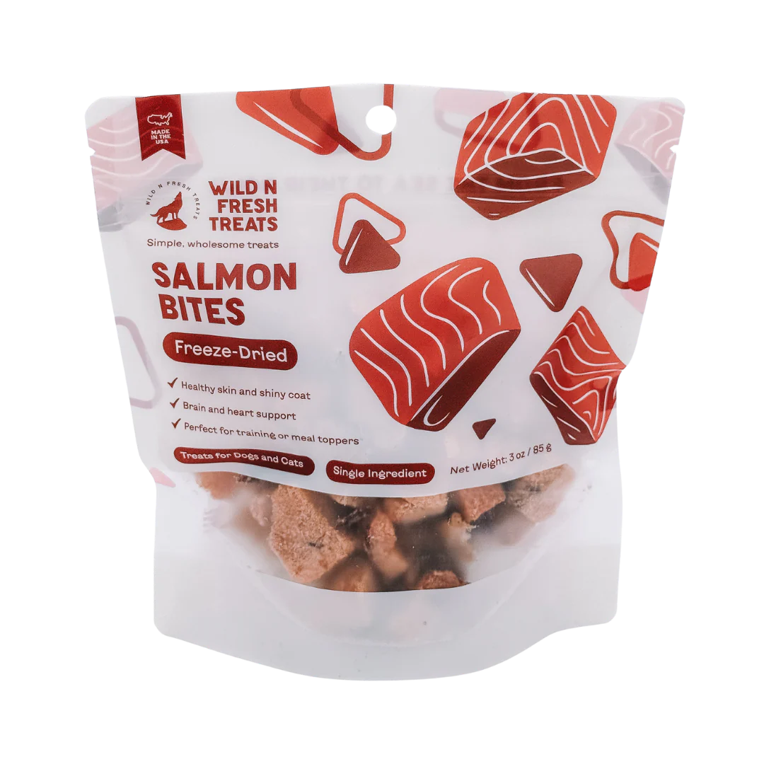 A hearty, omega-rich treat your pets will go wild for! Our Freeze-Dried Salmon Bites are made with 100% premium salmon and gently freeze-dried to lock in natural nutrients and bold, irresistible flavor. Packed with protein and healthy fats, these bites help support brain function, heart health, and a shiny coat—perfect for both dogs and cats.