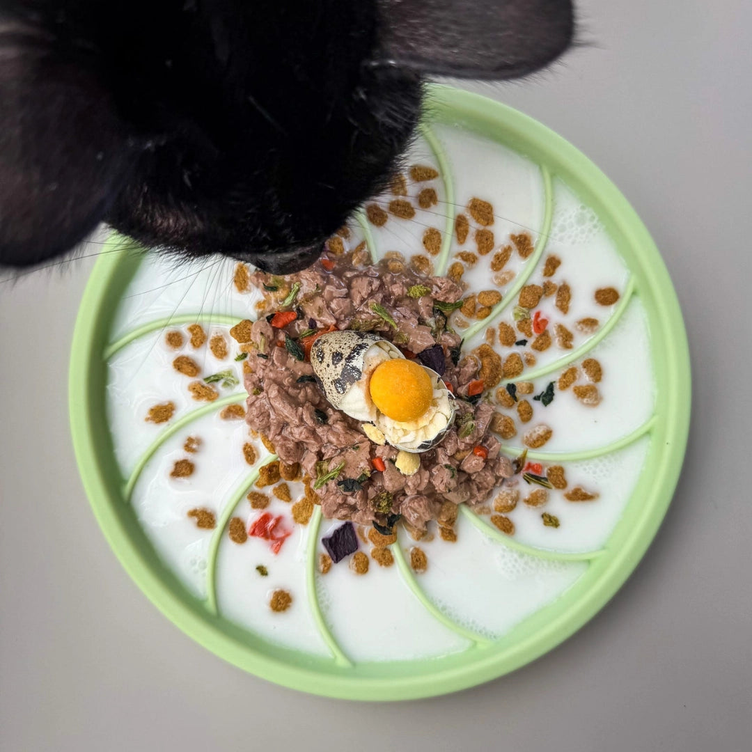 Simply prep your meal in our Zoomies slow feeder, stack the wheelies lick mat and lid, facing up on top and you're ready for any on the go meals! Alternatively, fill the wheelies lick mat and lid with your favourite yogurt or spreads and freeze as is for an extended enrichment session! - Trust us, you'll thank us later!