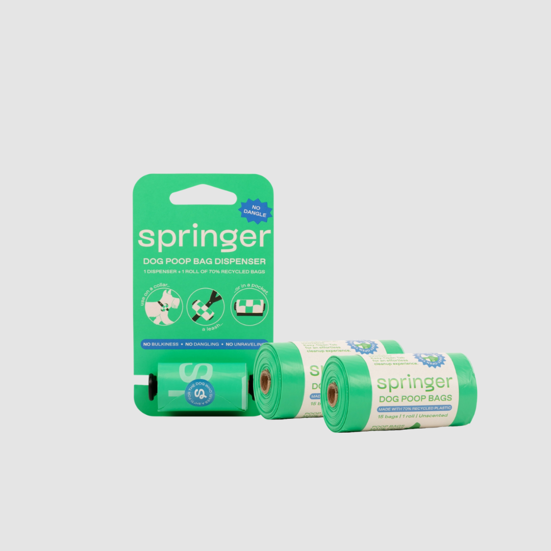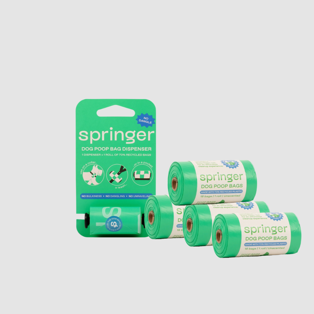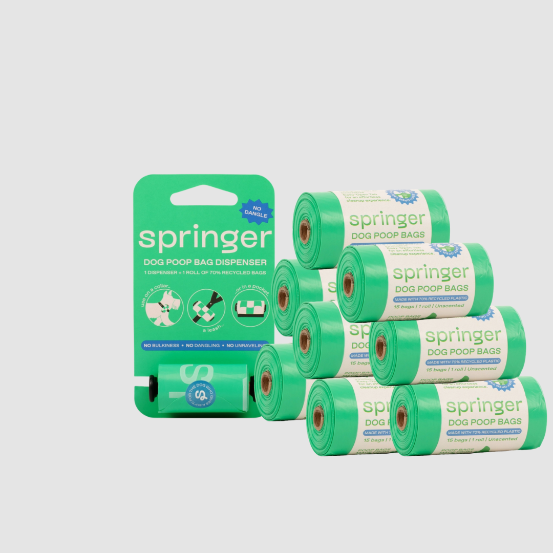 Springland Dog Poop Bag Dispenser Holder + Roll Bundle