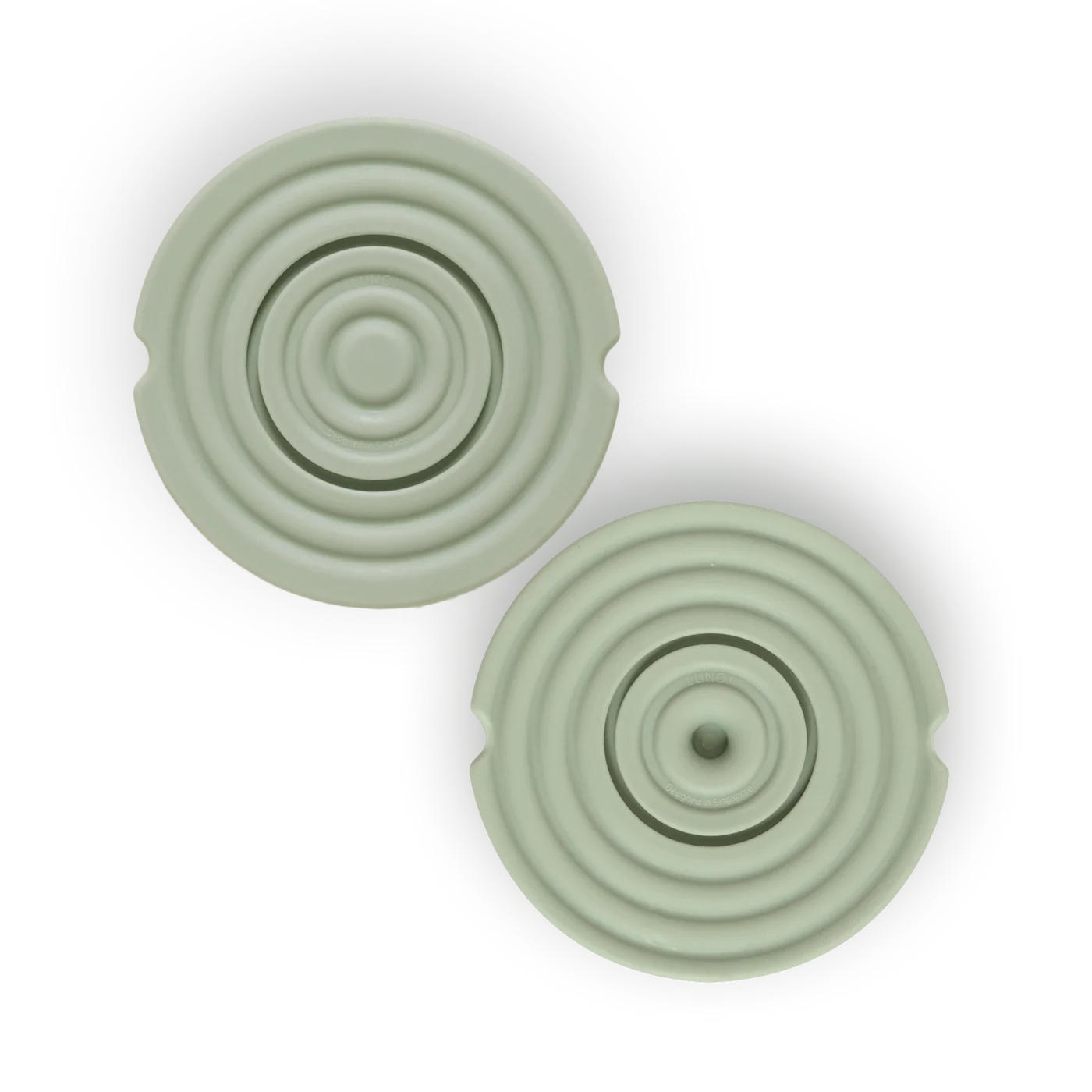Twirl is a pair of circular plates with no sharp angles that paste can get stuck in. Thoughtfully designed ridges help to remove leftovers, making cleaning a breeze. Simply place both sides together and give it a twirl to spread treats or scrub!
