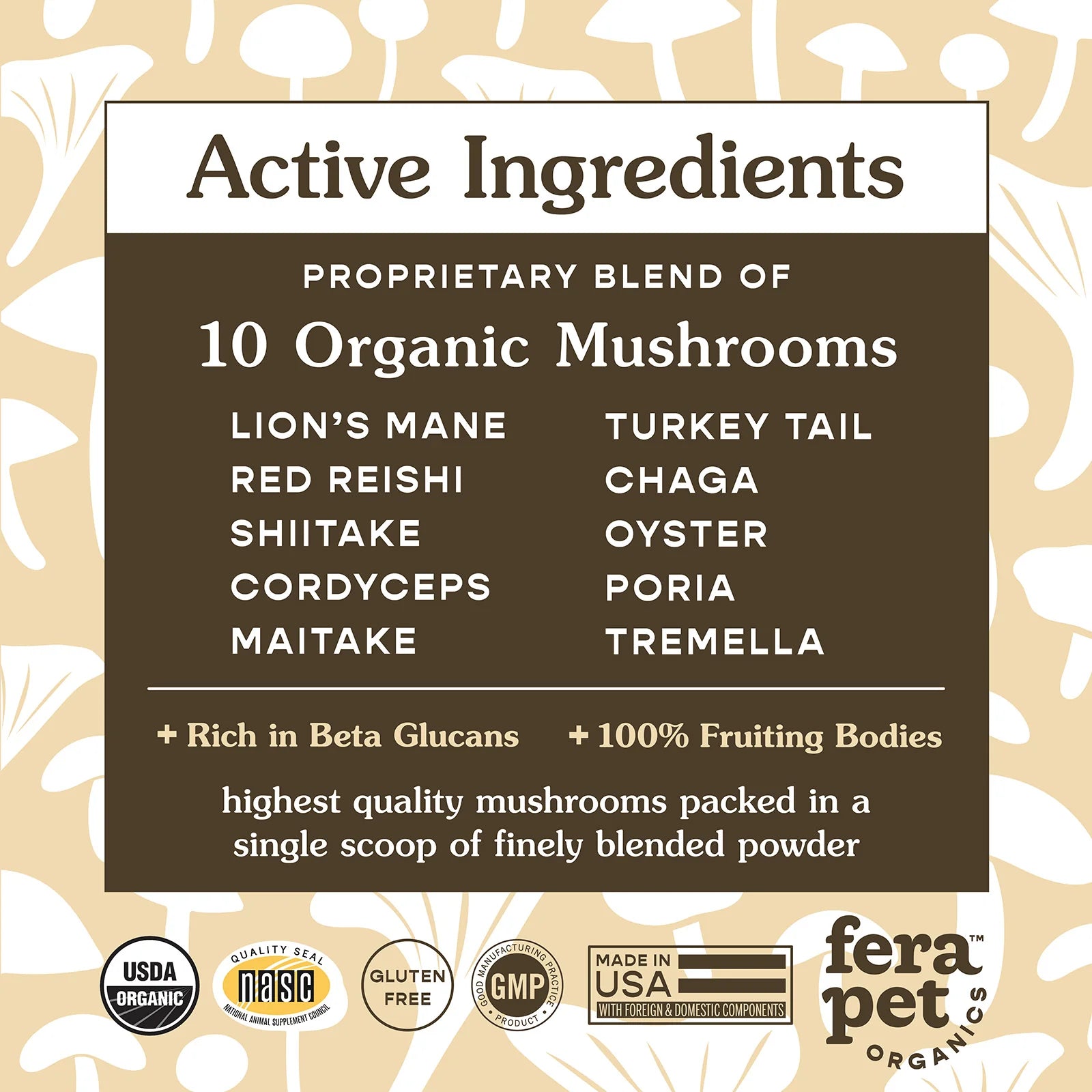 Fera Pets USDA Organic Mushroom Blend for Immune Support for Dogs & Cats