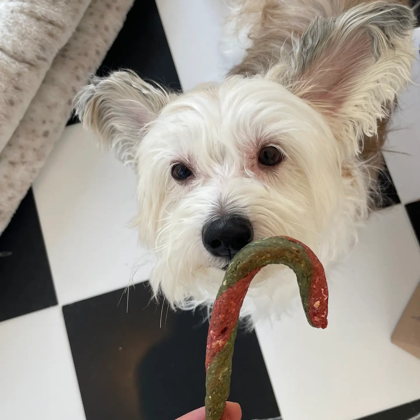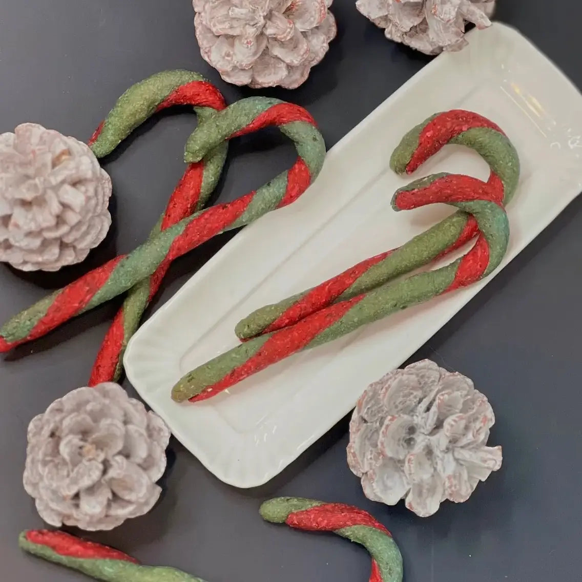 Celebrate the winter holidays with our superfood pup friendly candy cane made with spirulina, beet, parsley, coconut oil and flaxseed!