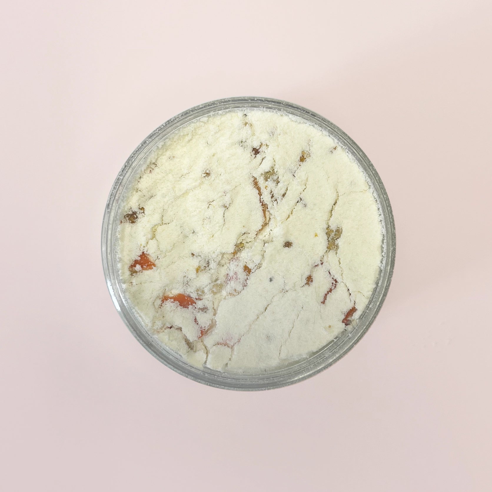 A clean, mixable, small-batch topper for dogs. Gentle goat milk meets freeze-dried strawberry, carrot, and a touch of bee pollen for a bright seasonal blend that sprinkles easily over meals or mixes into a light, drinkable treat. Made in small batches as part of our limited Spring Collection.